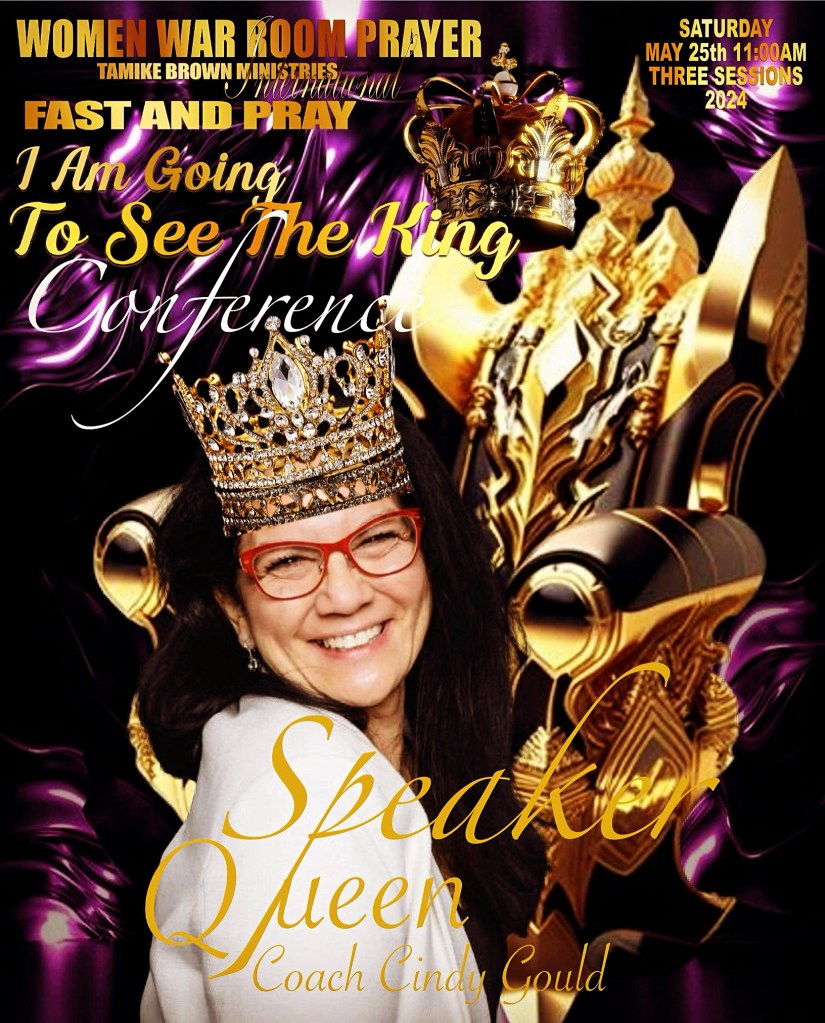 Speaker Queen Coach Cindy Gould. Women War Room Prayer Conference 2024!