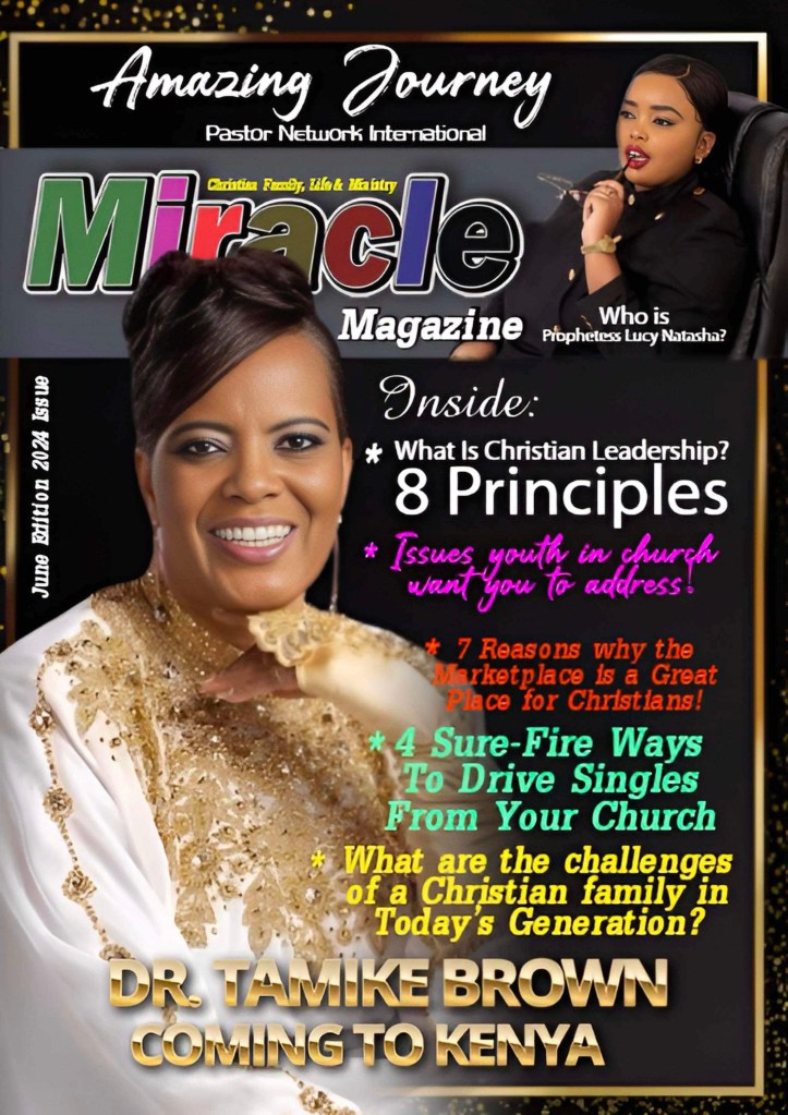 Dr. Tamike Brown Embraces The Front Cover of Miracle Magazine in Kenya. June Edition Issue 2024!