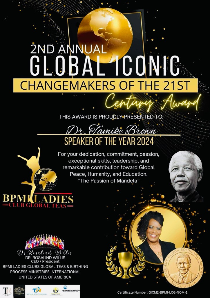 Recipient To Receive “Speaker Of The Year Award 2024”. 2nd Annual Global Iconic. ChangeMakers Of The 21st Century! 0.0 by tamikebrownministries