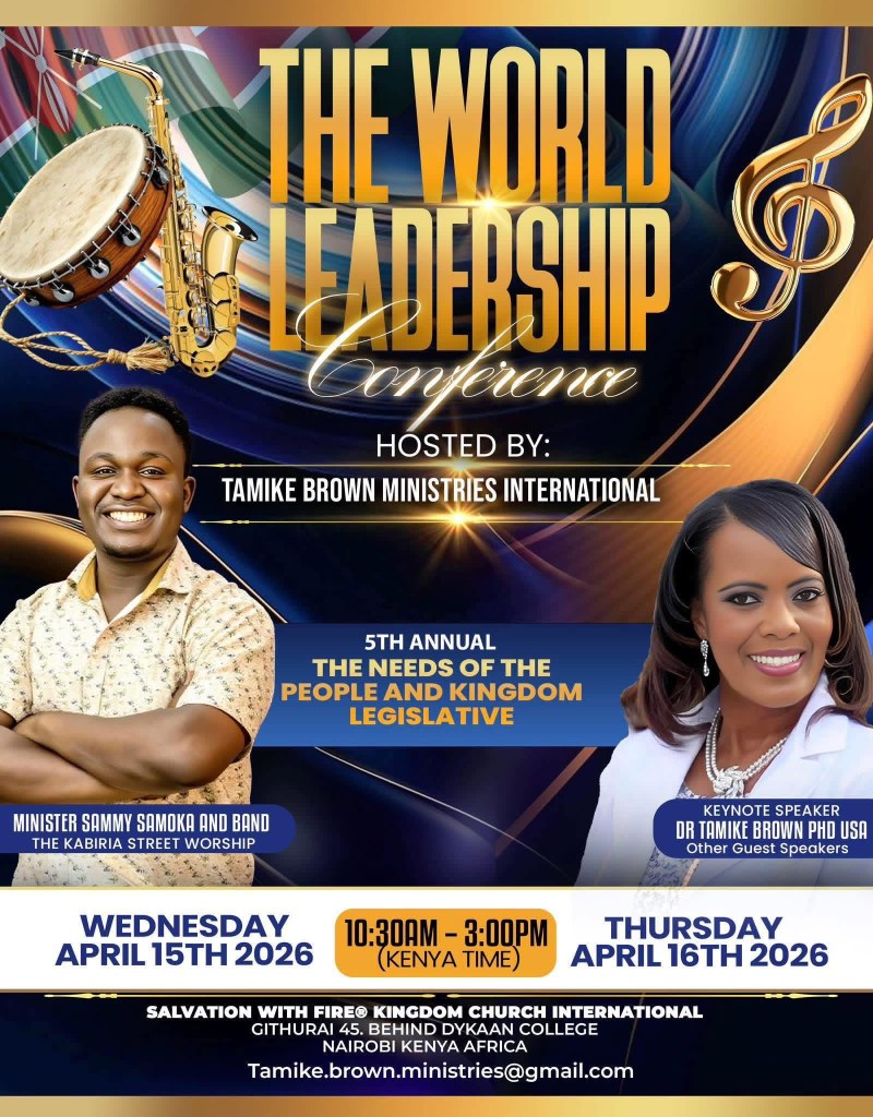 The World Leadership Conference! Thursday Only! April 16th 2026. 10:00AM to 4:00PM. Nairobi Kenya. Africa. Hosted by: Tamike Brown Ministries International.