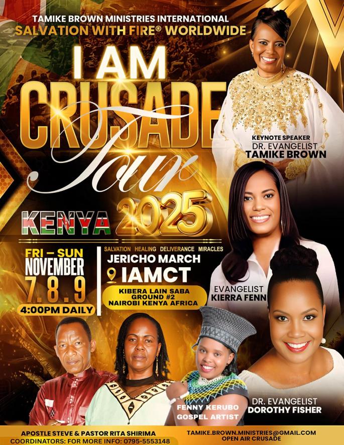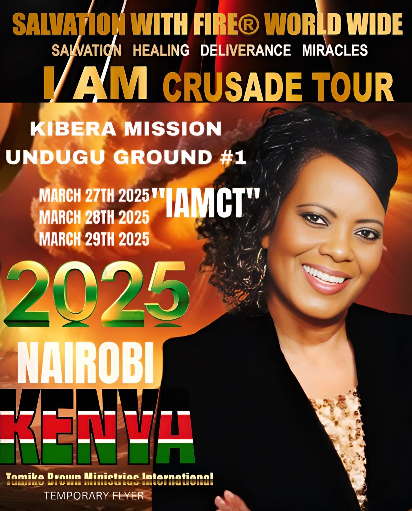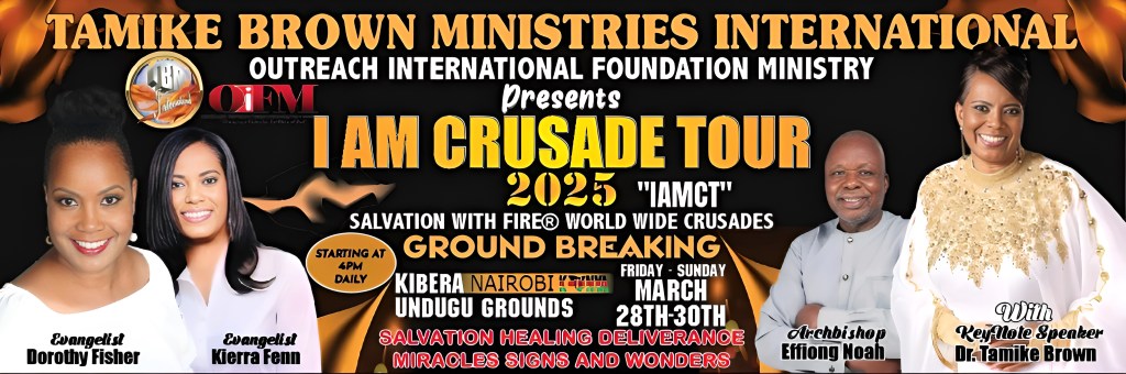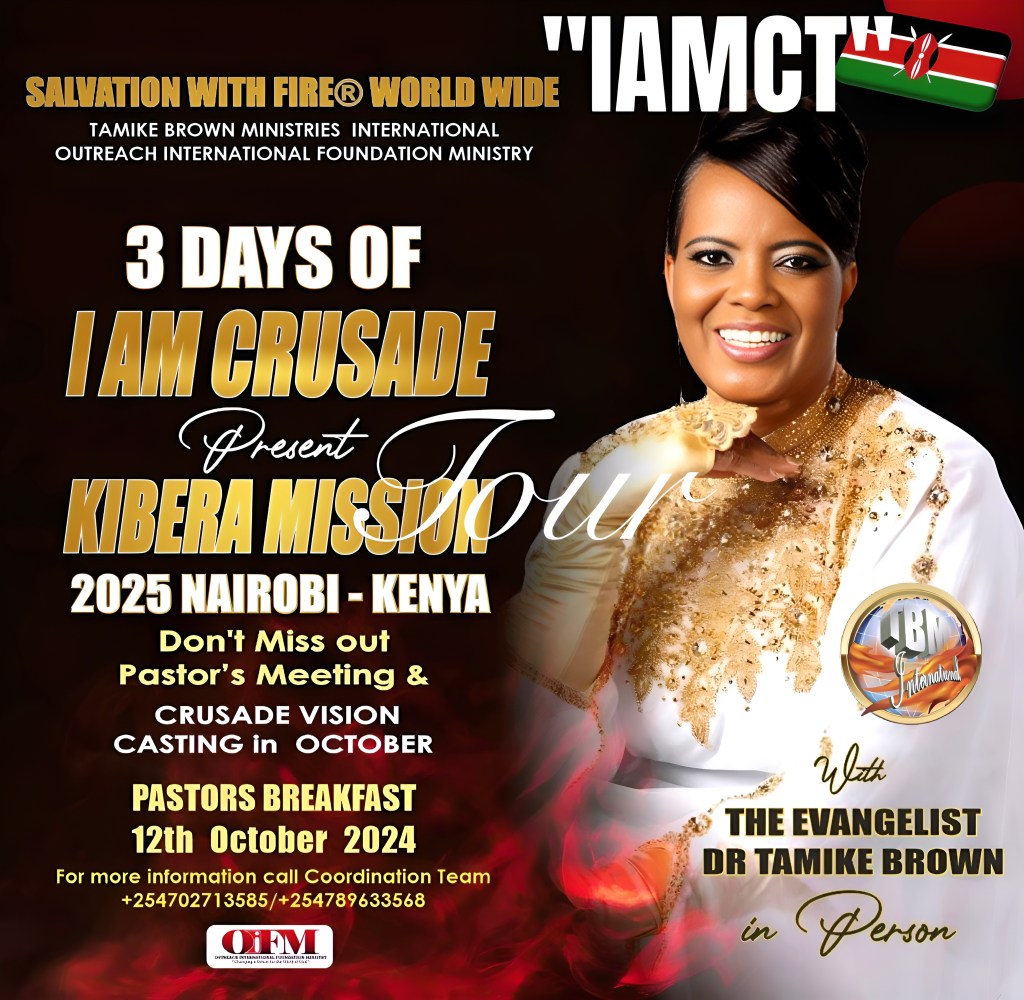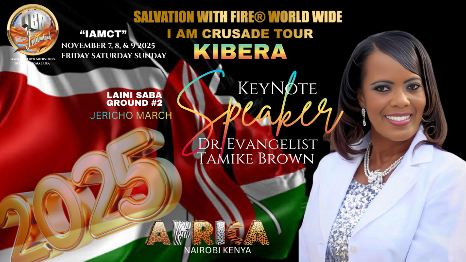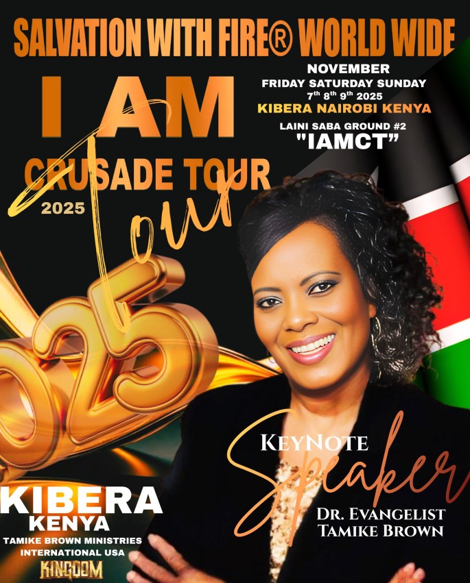 I AM CRUSADE TOUR 2025 “IAMCT” SALVATION WITH FIRE® WORLD WIDE CRUSADES. KEYNOTE SPEAKER DR. EVANGELIST TAMIKE BROWN. “KIBERA MISSION” NAIROBI KENYA. AFRICA. NOVEMBER 2025