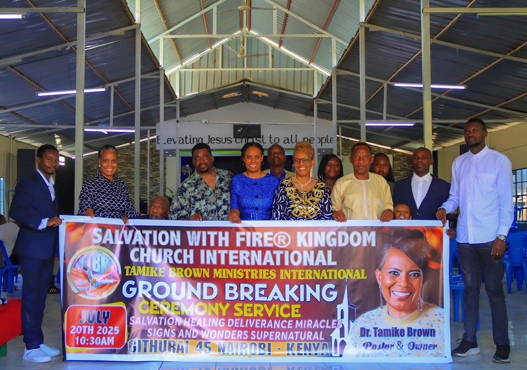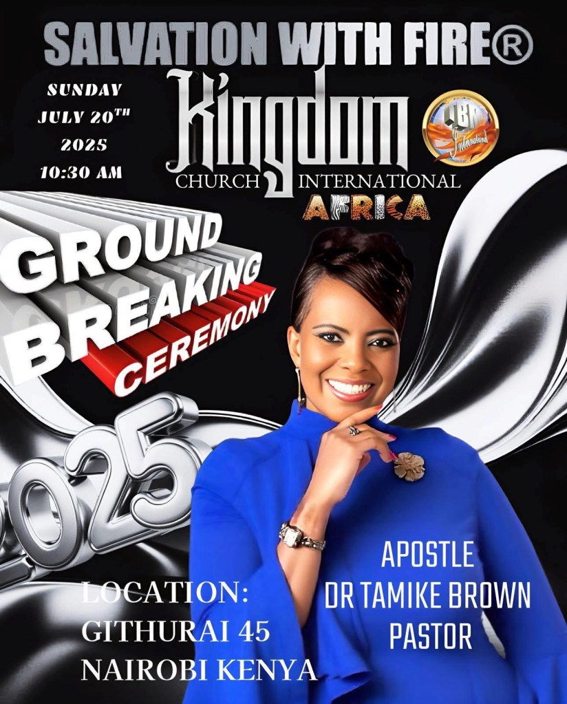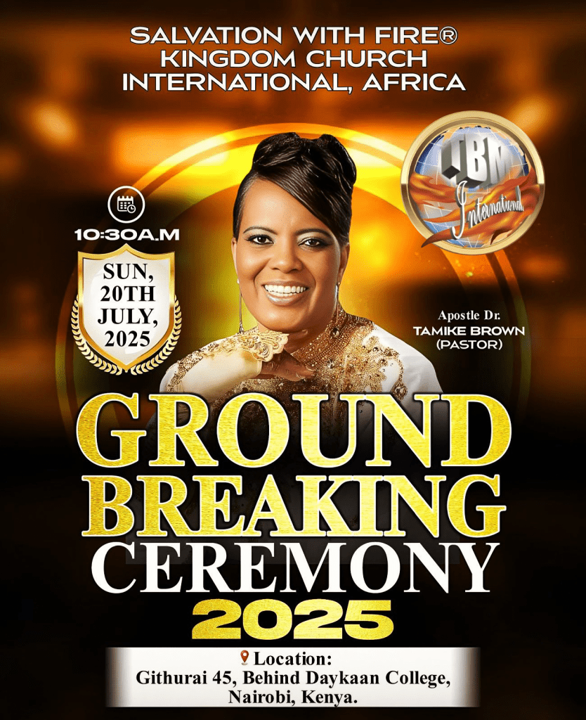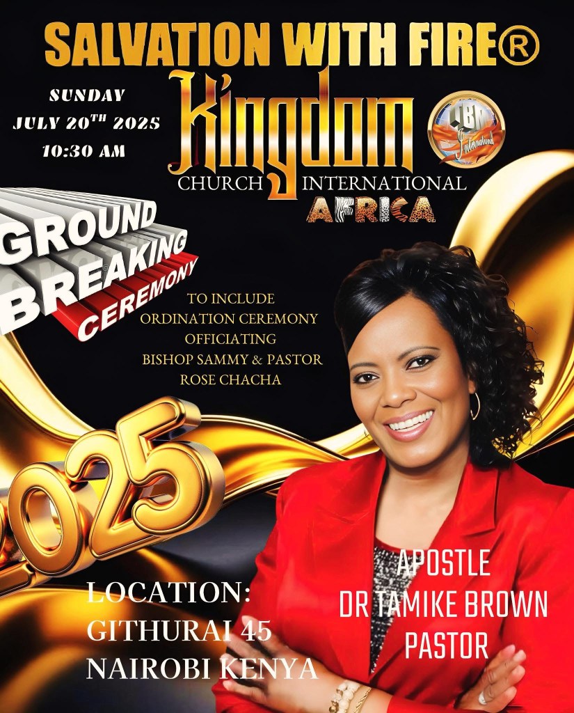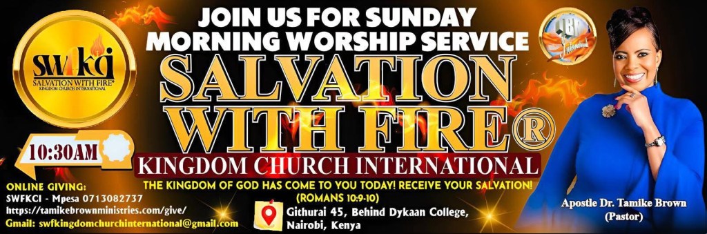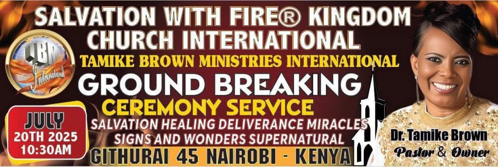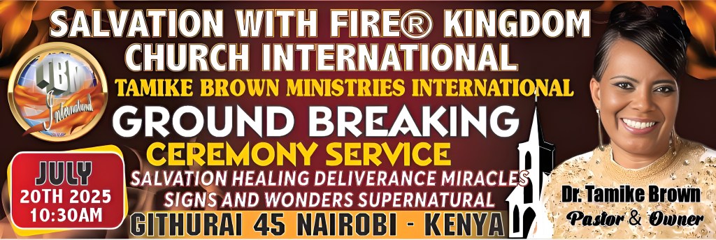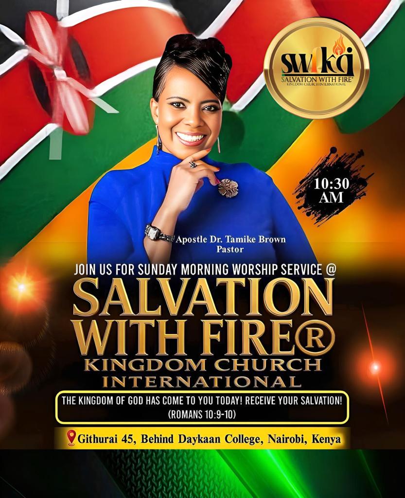 SALVATION WITH FIRE® KINGDOM CHURCH INTERNATIONAL. APOSTLE DR. TAMIKE BROWN PASTOR. LOCATION GITHURAI 45. NAIROBI KENYA AFRICA 2025