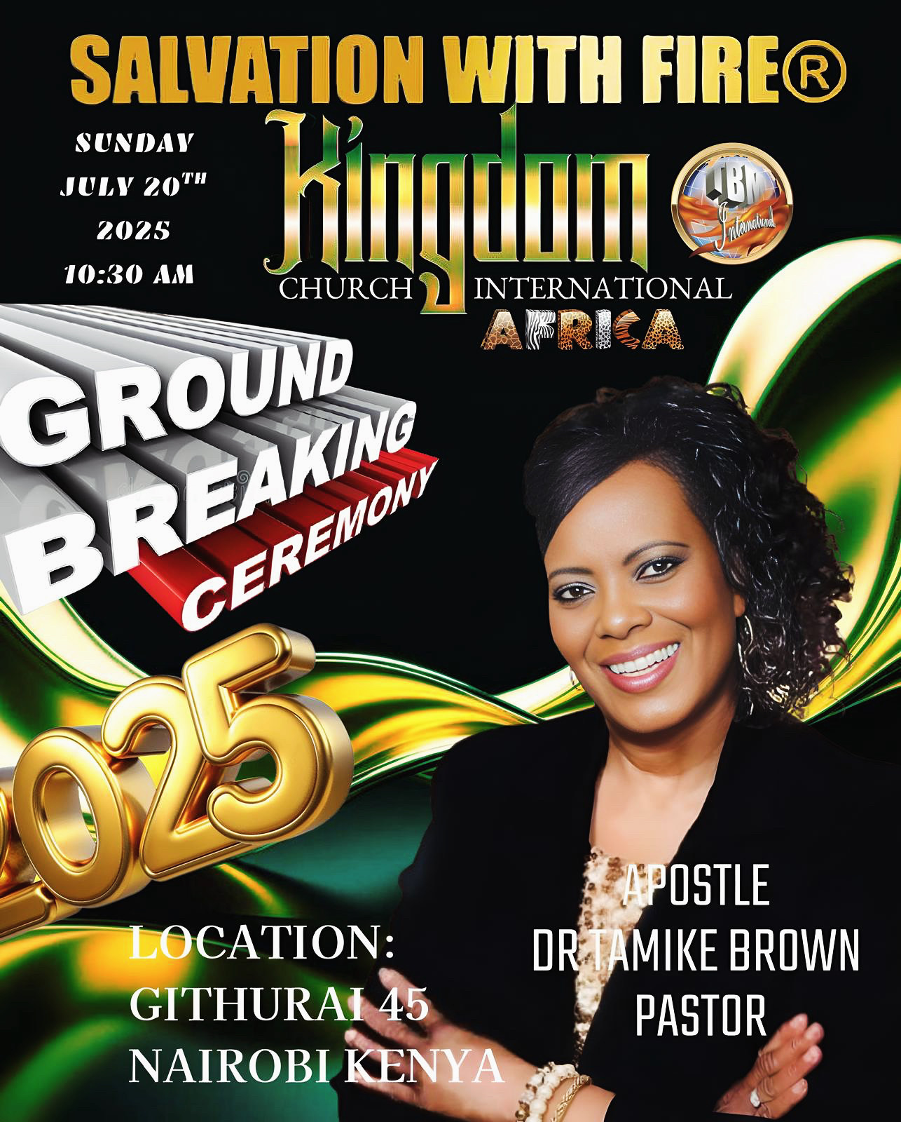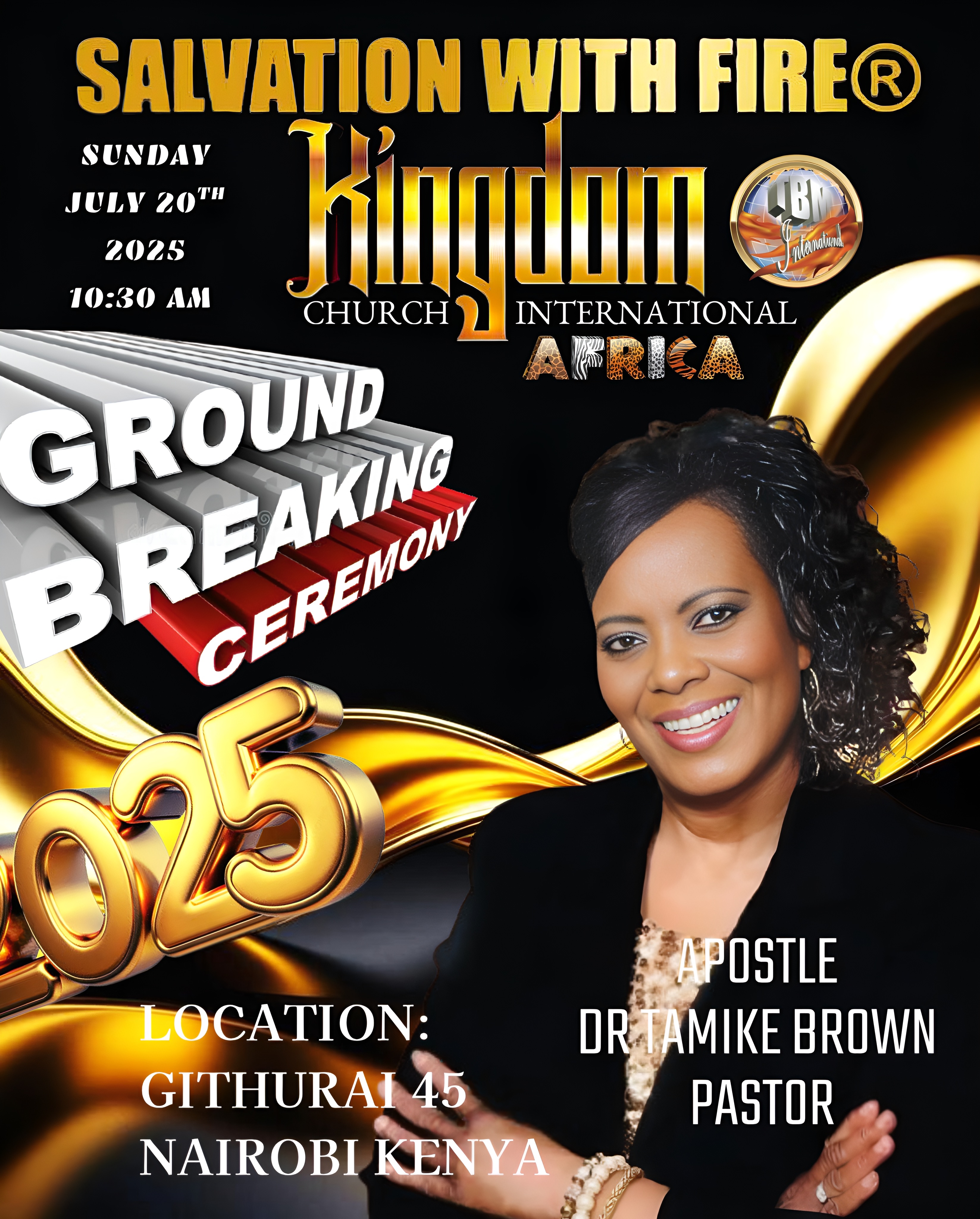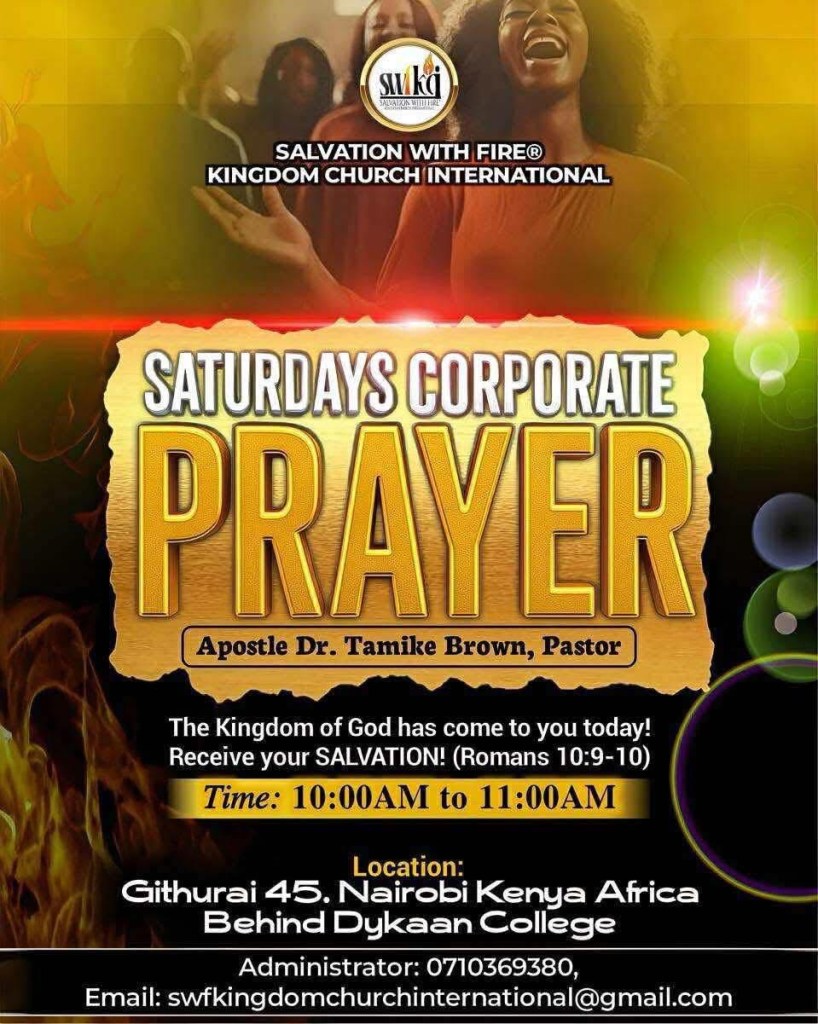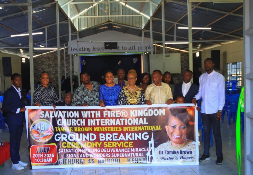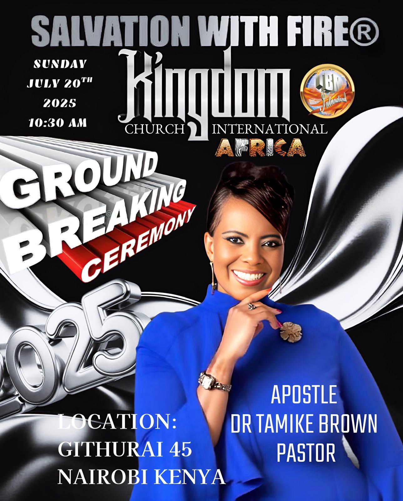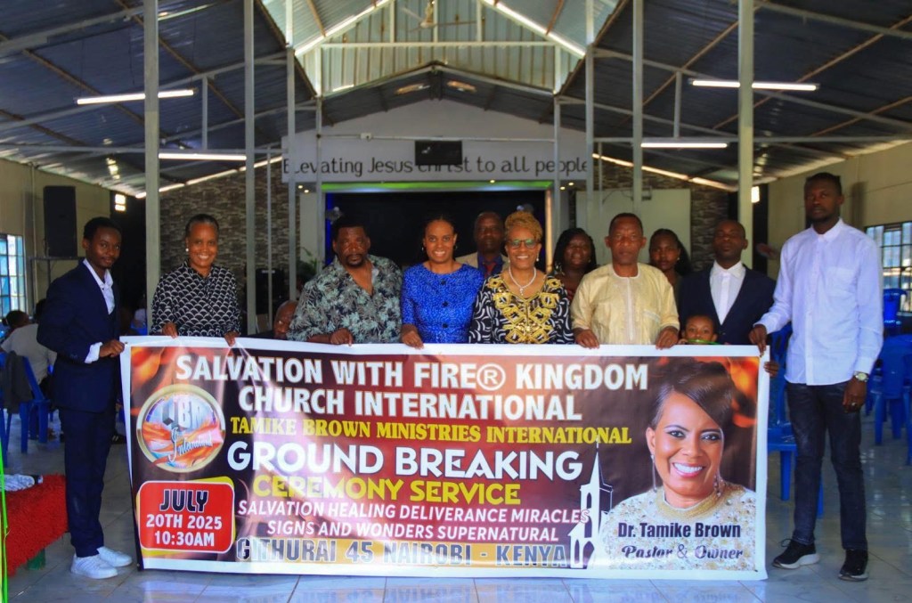 SALVATION WITH FIRE® KINGDOM CHURCH INTERNATIONAL. APOSTLE DR. TAMIKE BROWN PASTOR. LOCATION GITHURAI 45. NAIROBI KENYA AFRICA 2025